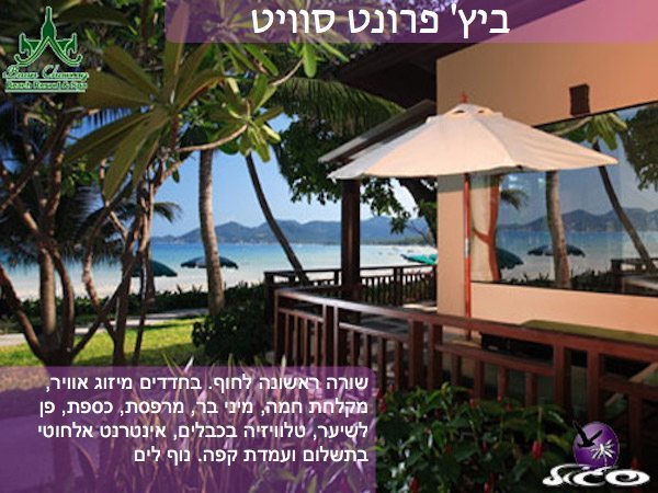 • שורה ראשונה לחוף. בחדדים מיזוג אוויר, מקלחת חמה, מיני בר, מרפסת, כספת, פן לשיער, טלוויזיה בכבלים, אינטרנט אלחוטי בתשלום ועמדת קפה. נוף לים