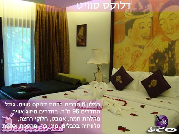 • במלון 6 חדרים ברמת דלוקס סוויט. גודל החדרים 96 מ"ר. בחדרים מיזוג אוויר, מקלחת חמה, אמבט, חלוקי רחצה, טלוויזיה בכבלים, מיני בר, מרפסת וכספת