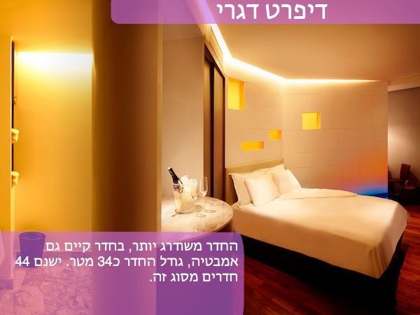 - דיפרנט דיגריי The Different Degree – החדר משודרג יותר, בחדר קיים גם אמבטיה, גודל החדר כ34 מטר. ישנם 44 חדרים מסוג זה.