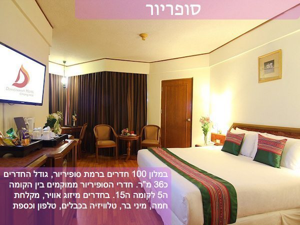 מלון סנטרה מלון סנטרה דואנגטאוון. ברמת 4 כוכבים מרשת מלונות סנטרה. המלון ממוקם בלב העיר העתיקה של ציאנג מאי רק 2 דקות הליכה משוק הלילה ומבית חבד. המלון מציע לובי רחב ידיים, ארוחת בוקר טובה ושרות מצויין כמו ברוב מלונות סנטרה.