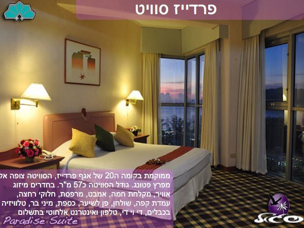 ממוקמת בפינת הקומה ה20 של אגף פרדייז, הסוויטה צופה אל מפרץ פטונג. גודל הסוויטה כ57 מ"ר. בחדרים מיזוג אוויר, מקלחת חמה, אמבט, מרפסת, חלוקי רחצה, עמדת קפה, שולחן, פן לשיער, כספת, מיני בר, טלוויזיה בכבלים, די וי די, טלפון ואינטרנט אלחוטי בתשלום